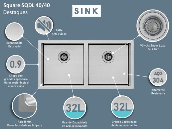 ![Cuba Dupla Inox Square Light [40+40] 890X450X200mm Escovada Valvula Redonda SINK - Image 2](https://hidronox.com.br/wp-content/uploads/sites/2/2025/01/29733-Detalhamento.jpg)