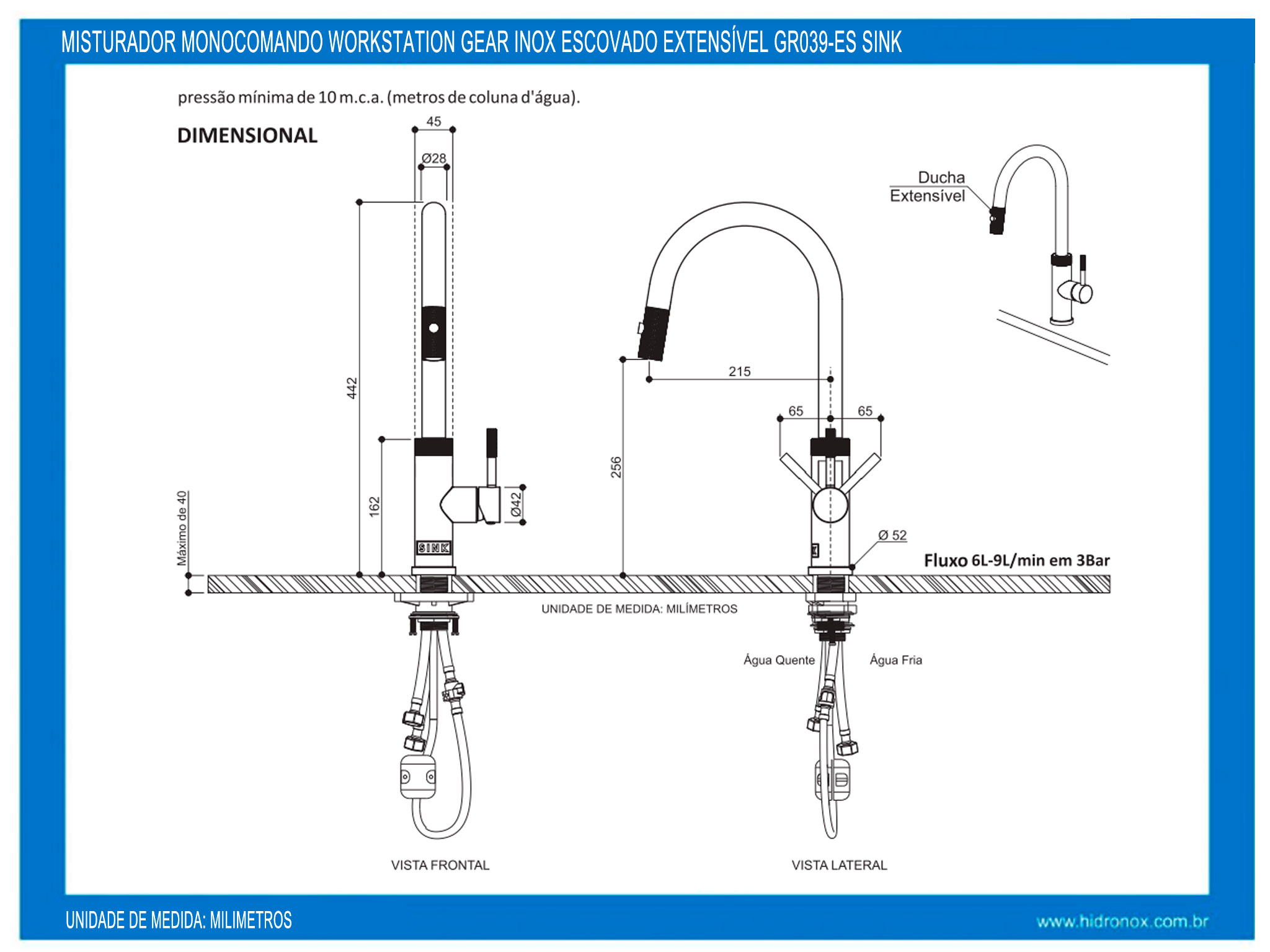 Misturador Monocomando Workstation Gear Inox Escovado Extensível GR039-ES Sink